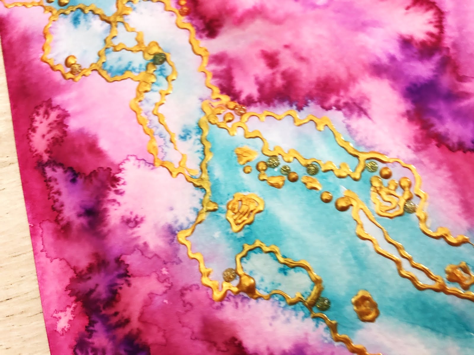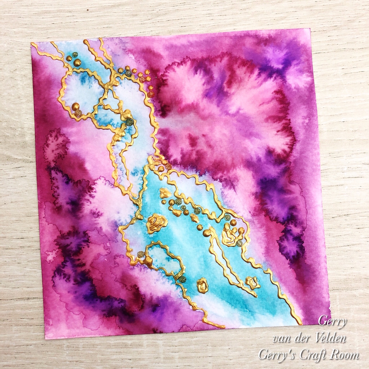 Ik was geïnspireerd door het effect dat je krijgt met alcohol inkt en de blending solution op Yupo papier. Die producten heb ik niet, dus ik heb erover nagedacht hoe ik die look kon krijgen met de producten die ik wel heb. En ik denk dat het echt leuk is geworden.