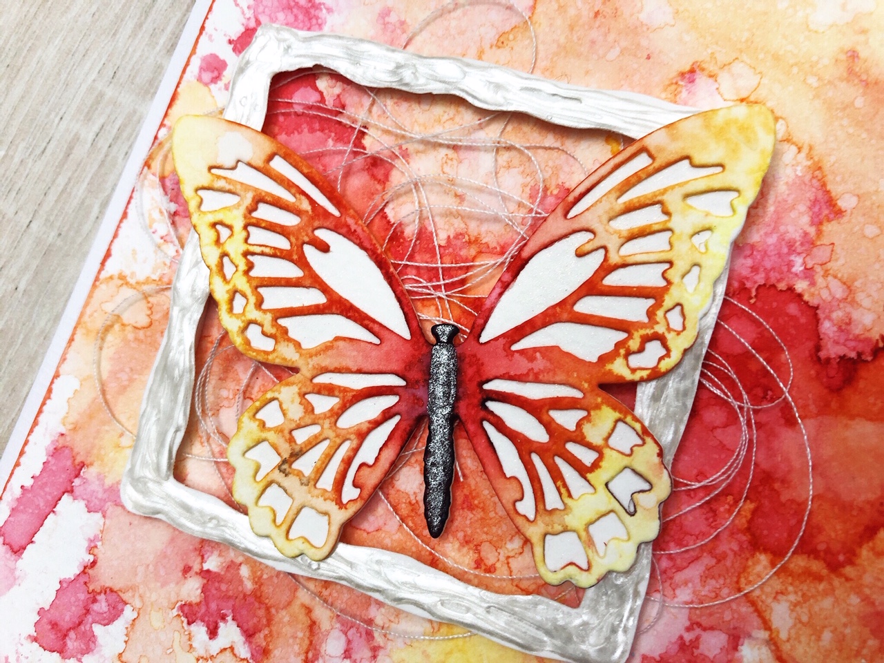 Holtz Detailed Butterflies with the same colours and I coloured the body with the Nuvo glitter marker.