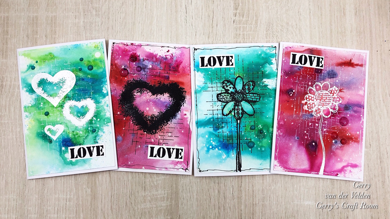 Hallo lieve knutsel vrienden, vandaag wil ik jullie eenvoudige Mixed Media kaarten laten zien met Shimmer Powder & Masking Fluid. En ik heb de Textured Flowers en Arty Hearty stempelsvan Rubber Dance Stamps gebruikt.