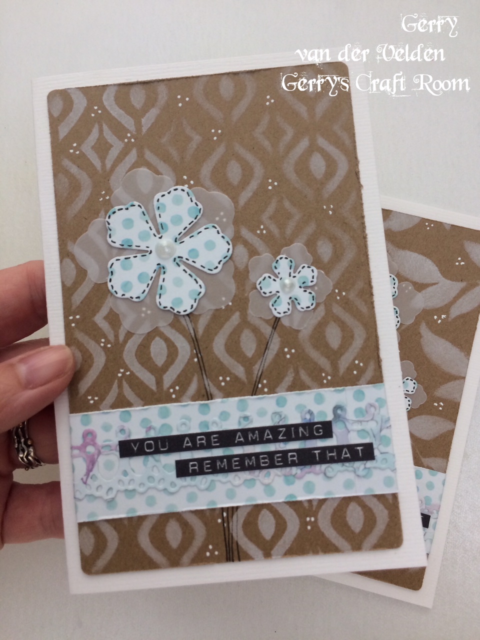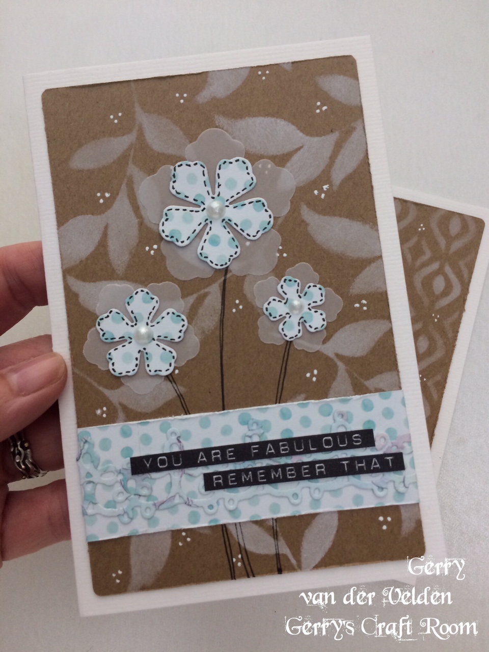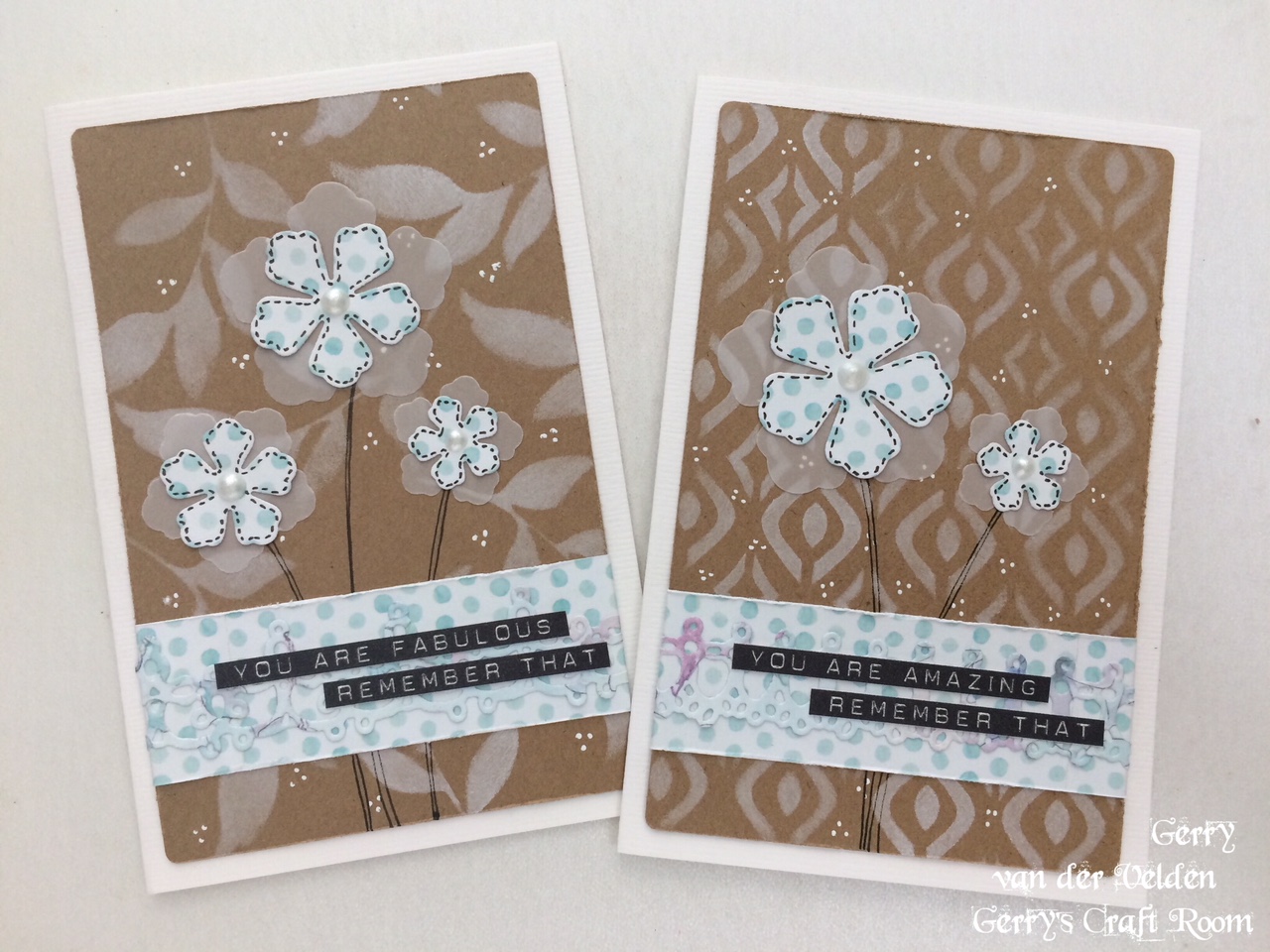 Vandaag heb ik 2 kaarten met Fabscraps stencils met witte inkt op kraft papier voor jullie