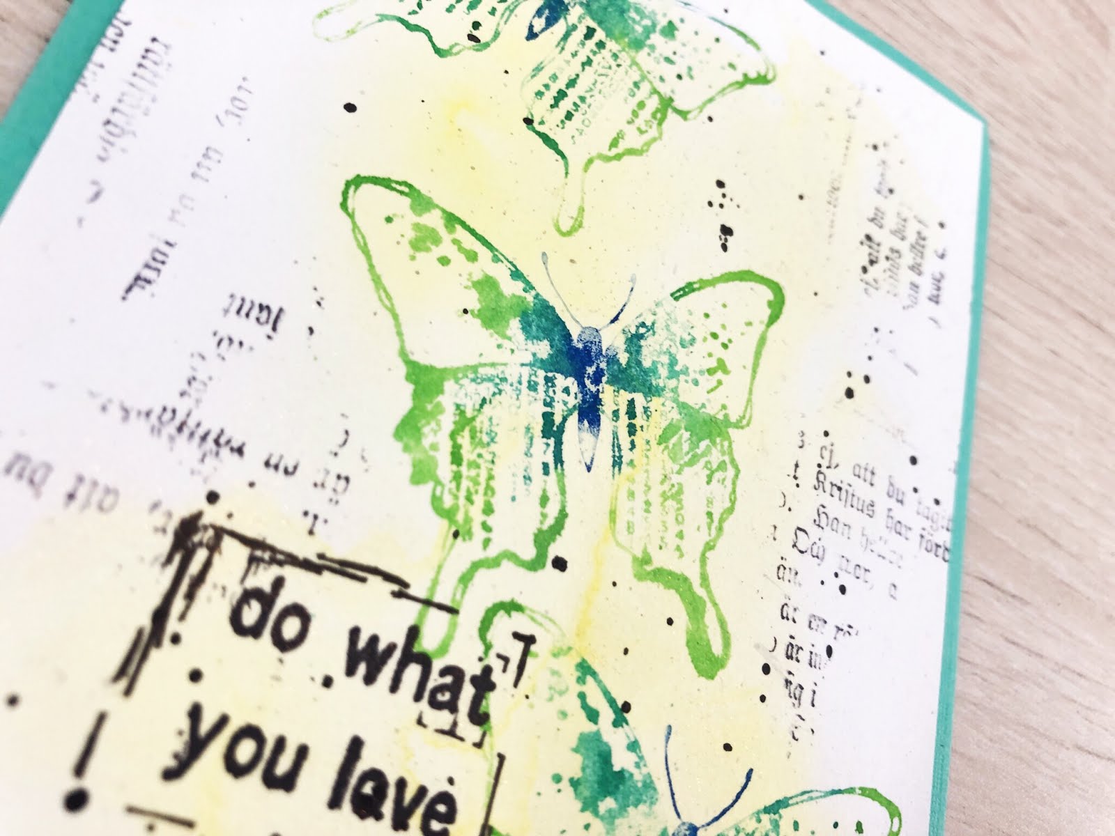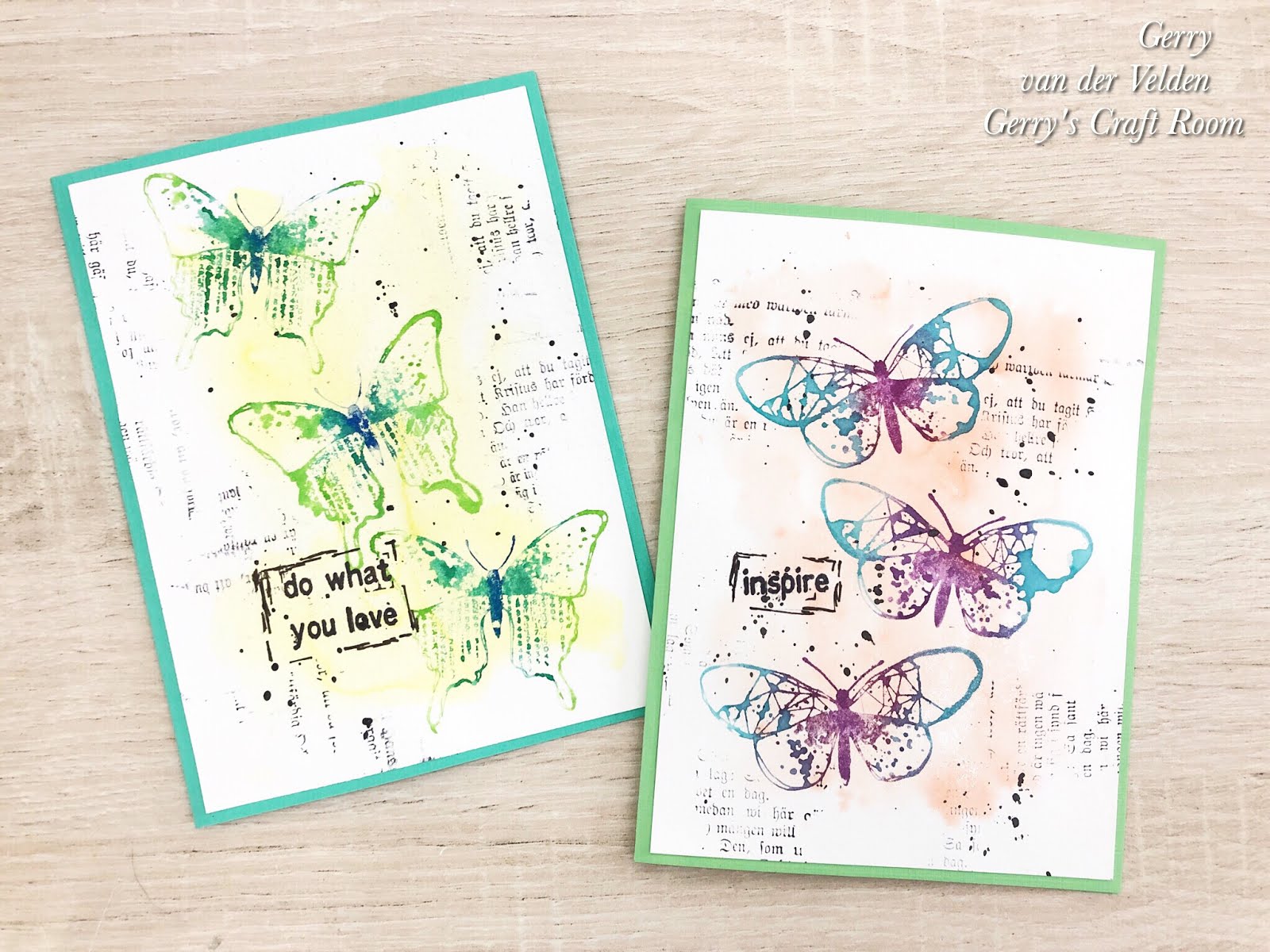 Hi lovely crafty friends, today I have two cards with a fun Faux Watercolour technique. Besides different colours nuvo Aqua Flow Pens I also used the Small Grungy Butterflies and Old Bookpage Rubber Dance stamps