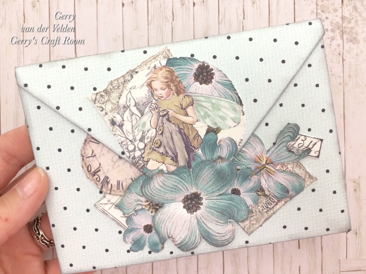 Ik heb deze envelop voor mijn moeder gemaakt, ze houdt van handgemaakte dingen, blauw, feeën en bloemen, dus dit was perfect