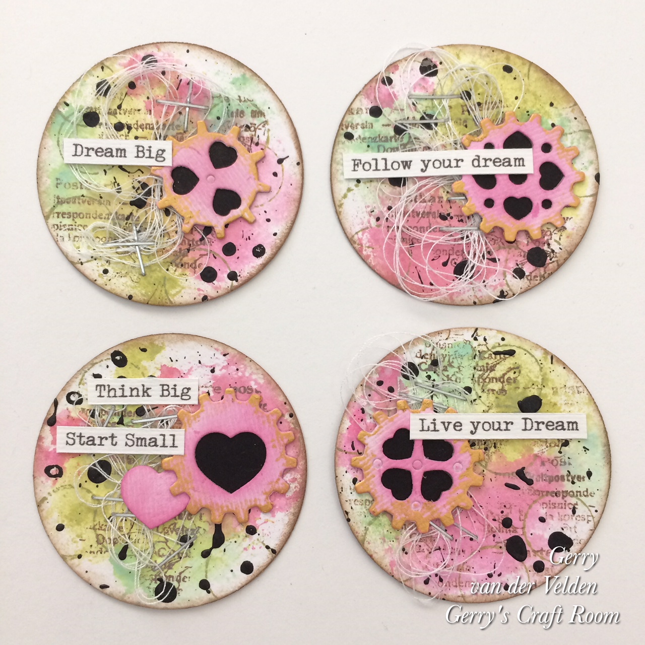 Weer een superleuk idee Gerry en de coins zijn leuk geworden! Zelf vind ik het fijn om ook m'n papier van tevoren wat nat te maken zodat de inkten wat meer doorvloeien………het idee om plastic over je tools te doen vind ik super! lieve groet Miranda