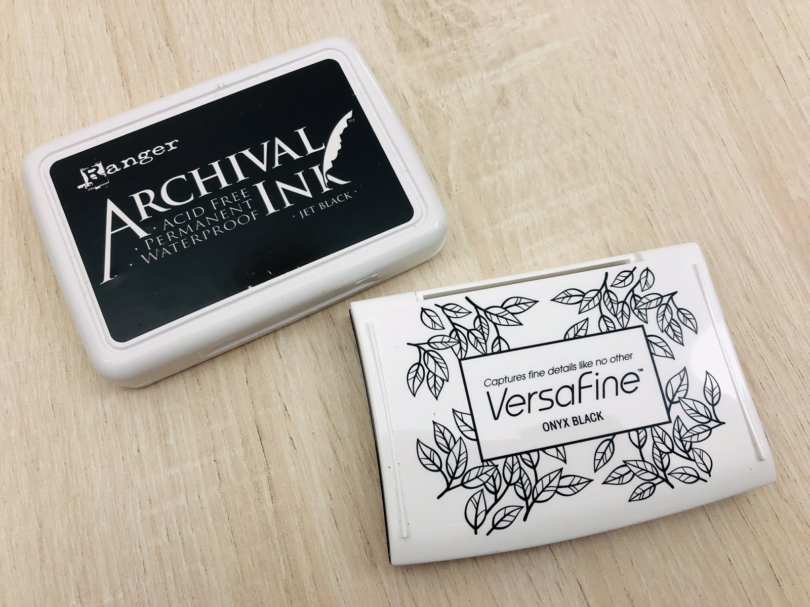- 3 colours ink, it doesn’t matter which ink. I am going to use Distress Oxide ink, Versafine and Memento ink. I will be using 3 colours in the example and I will make one example with just one colour ink. Just to show you don’t need a bunch of ink or colours to make something pretty.