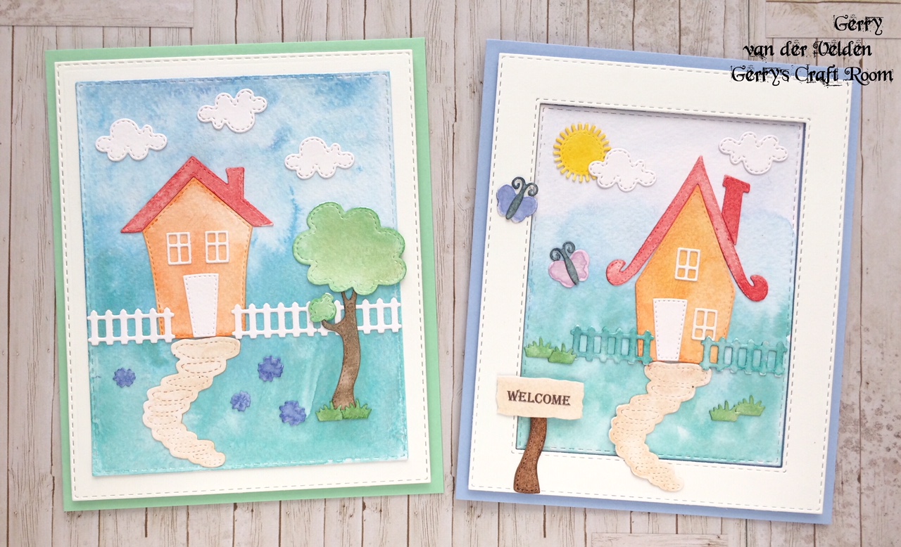 Today I have 2 cards with the super fun quirky house die set by Lisa Horton. These cards