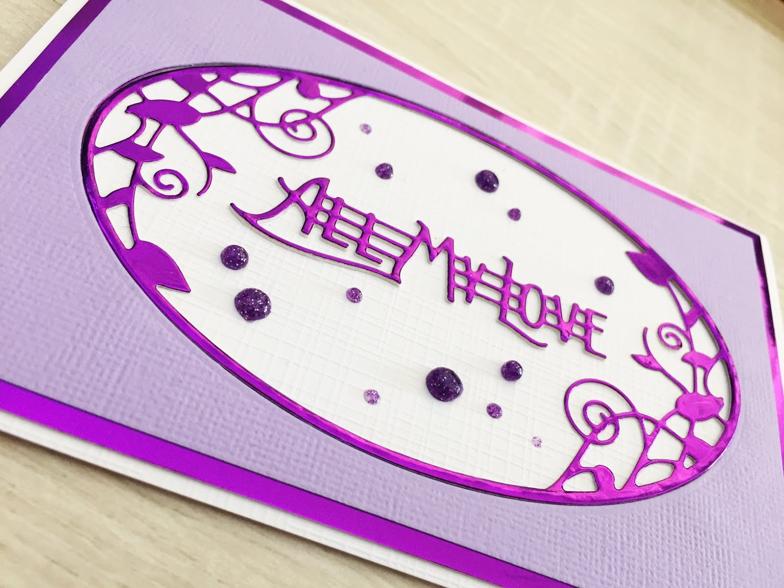 And another card with some more steps and here I used the oval cut out from the previous card. For the sentiment I used Shimmer Powder with the beautiful purple colour and shimmer.