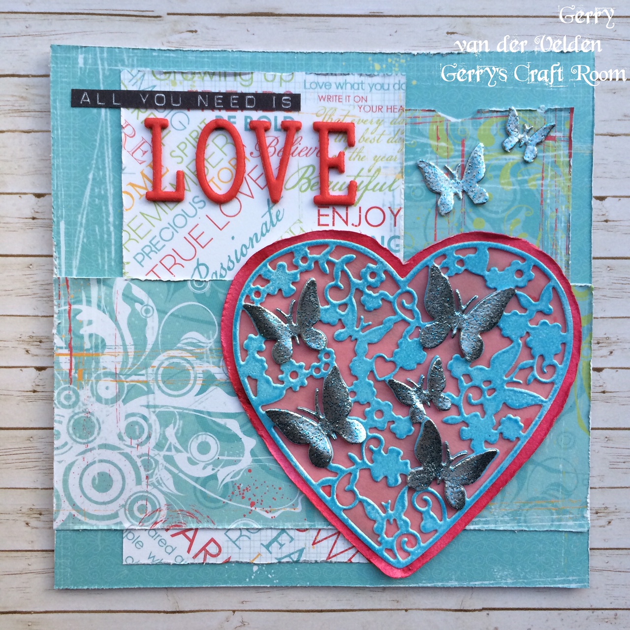 Vandaag nog een scrap-stijl Valentijnkaart met dessinpapier, embellishments en een tekst