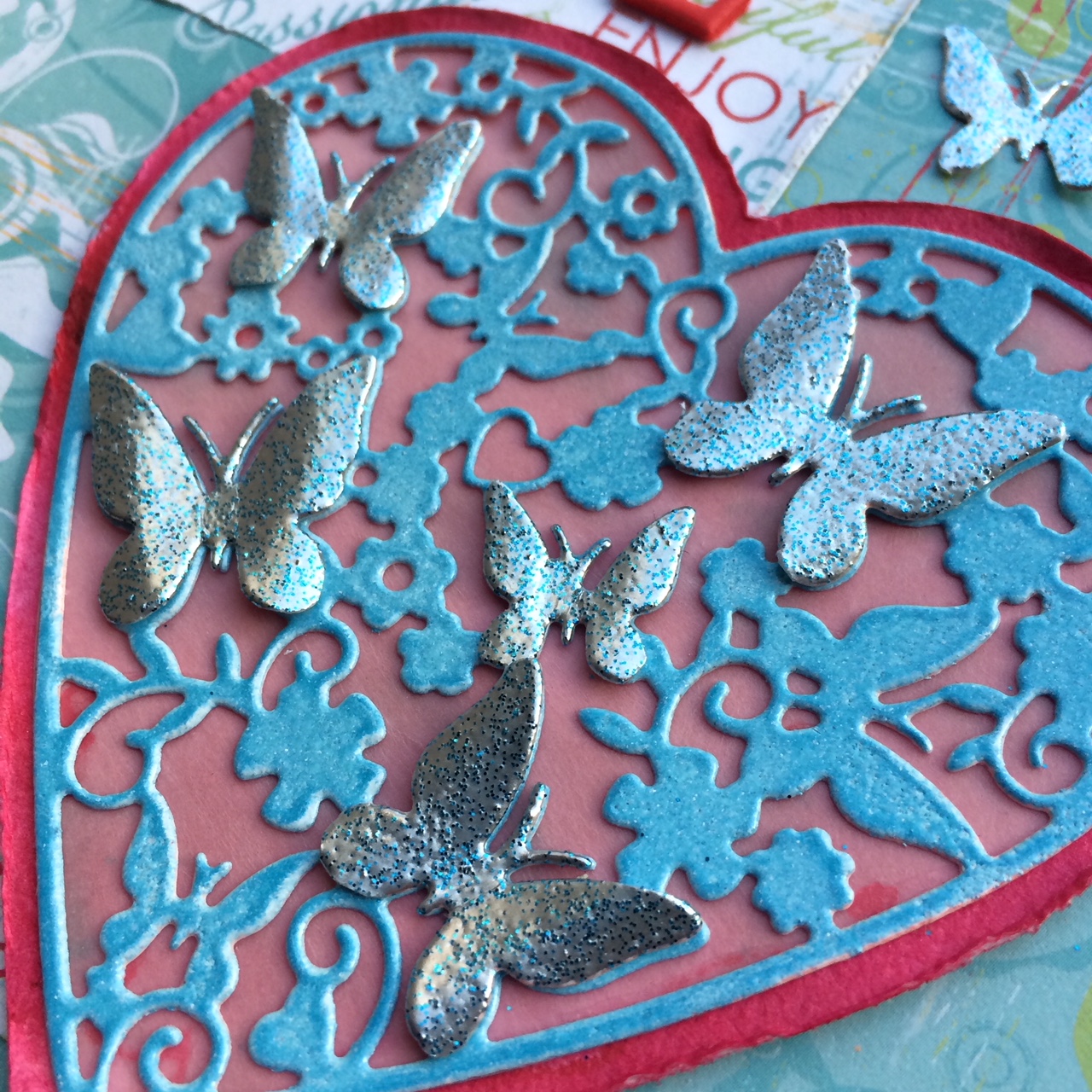 Today another a Scrap style Valentine’s card with patterened paper, embellishments and a sentiment
