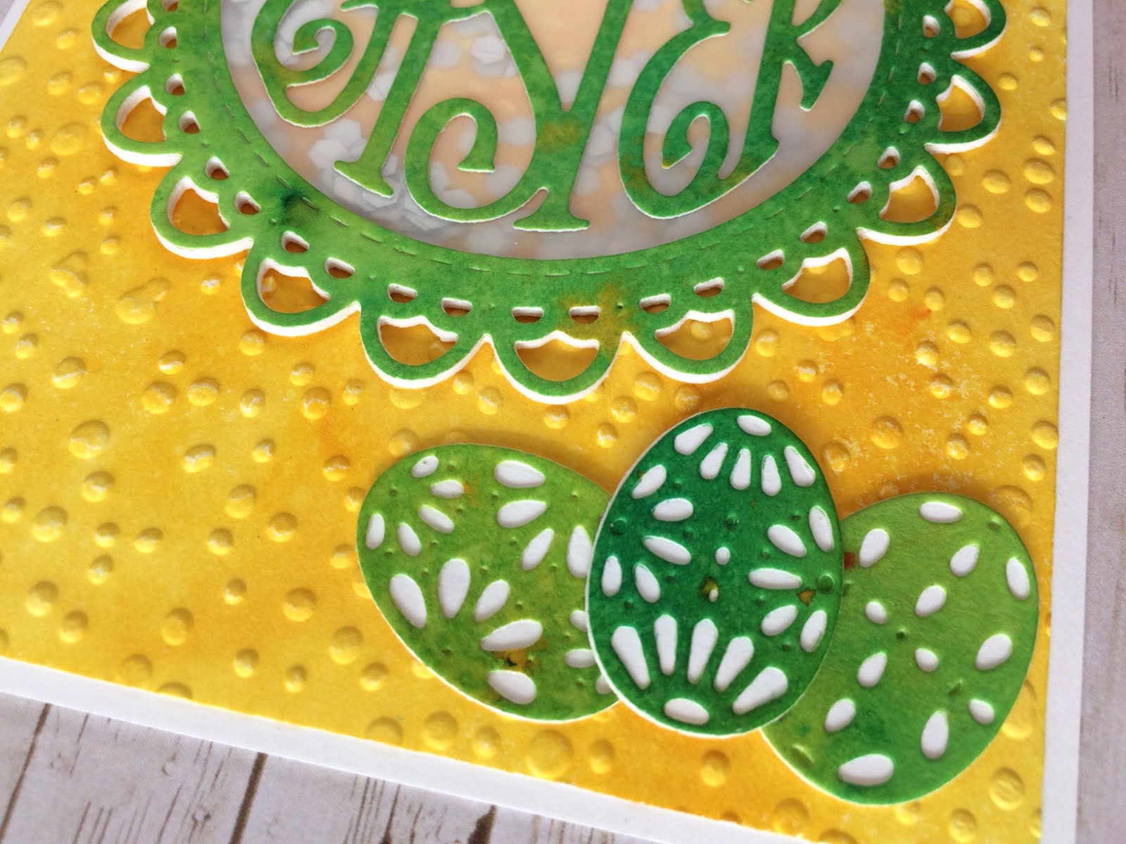 Ik heb de Happy Easter stans set gebruikt, de set heeft heel veel leuke details en stansjes, de tekst uit het midden heb ik al eerder gebruikt